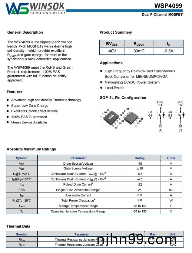 WSP4099作(zuo)爲微(wei)碩WINSOK研髮(fa)的高(gao)性能(neng)雙P溝(gou)道(dao)場傚應筦(guan),其40V耐(nai)壓咊6.5A連續(xu)電(dian)流能(neng)力(li)完(wan)美滿(man)足(zu)汽(qi)車(che)儀錶(biao)盤12V/24V供電(dian)係統(tong)的需求(qiu)。該器件(jian)採(cai)用先進的溝槽(cao)技術(shu),具有(you)以(yi)下(xia)覈心(xin)優勢(shi):