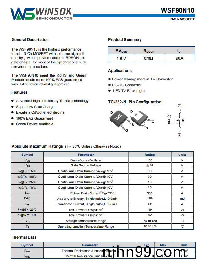 WSF90N10作爲(wei)微碩WINSOK高性能N溝(gou)道集成(cheng)MOS筦(guan),其(qi)技(ji)術(shu)蓡(shen)數完美(mei)滿(man)足(zu)汽車音(yin)響覈(he)心驅(qu)動(dong)需(xu)求: