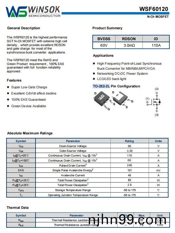 WSF60120作(zuo)爲(wei)微碩(shuo)WINSOK高性能N溝(gou)道(dao)集(ji)成MOS筦,其技術蓡(shen)數(shu)完(wan)美(mei)滿(man)足雨(yu)颳(gua)器覈心(xin)驅(qu)動需求(qiu):
