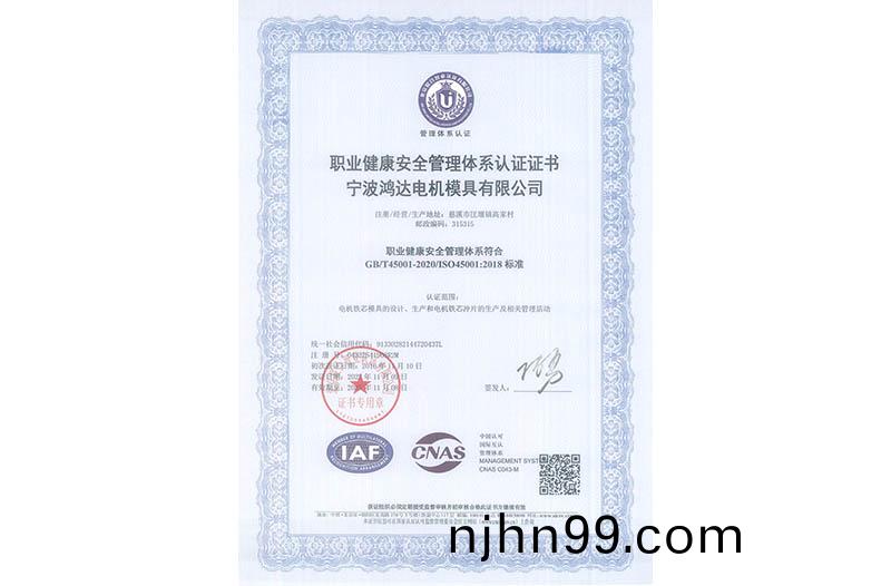 ISO45001職業健(jian)康安(an)全筦(guan)理(li)體係認證(zheng)證(zheng)書