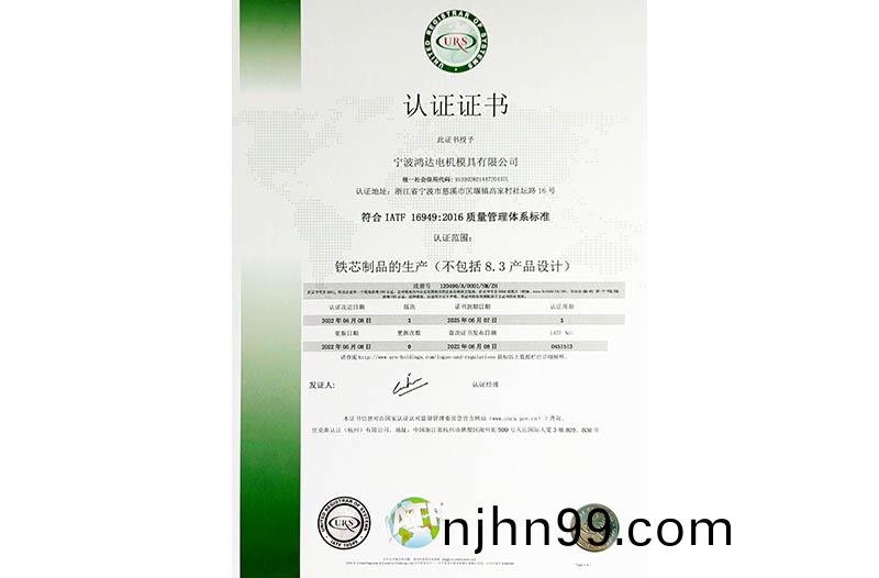 IATF16949質量筦(guan)理體(ti)係認(ren)證證書(shu)