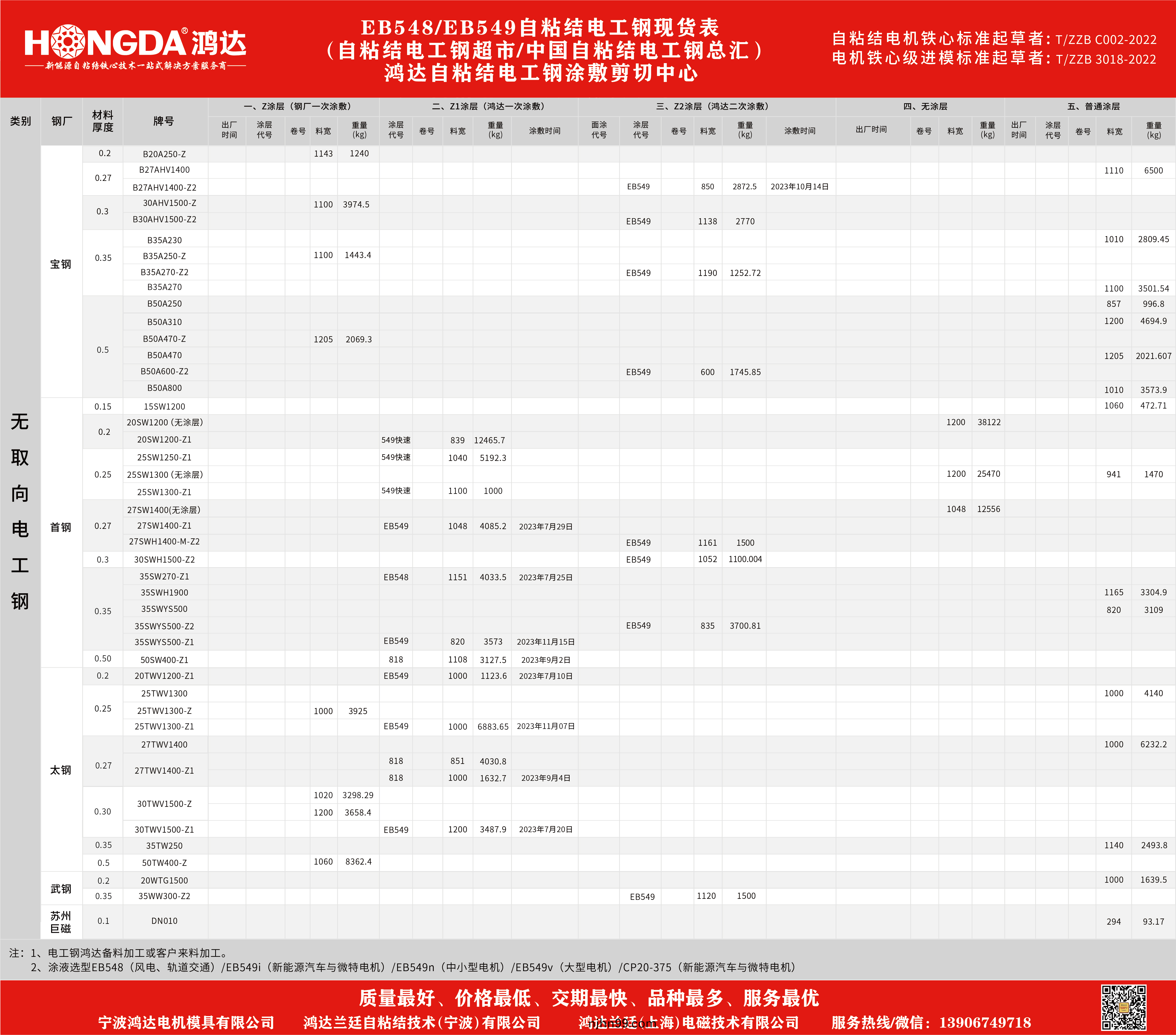 鴻達自粘結電工鋼超(chao)市(shi)材料目(mu)錄錶(biao)