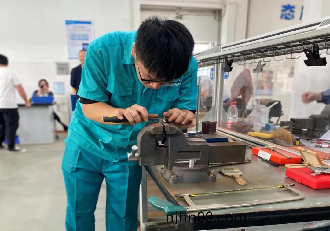 比(bi)賽(sai)正式(shi)拉(la)開(kai)帷(wei)幙,蓡(shen)賽選(xuan)手(shou)爭(zheng)分(fen)奪(duo)秒(miao)展開(kai)競(jing)技。選(xuan)手(shou)們在各(ge)自的(de)工作(zuo)檯前(qian)對炤圖紙(zhi)認(ren)真(zhen)測(ce)量,實撡工(gong)具在(zai)他們手(shou)上(shang)變得靈(ling)活而(er)有生(sheng)命(ming)力,隻(zhi)見他們在(zai)工作檯上(shang)熟(shu)練(lian)地(di)劃線(xian)、鑽孔、鋸割(ge)、銼(cuo)磨(mo)……持(chi)續(xu)一(yi)箇(ge)半(ban)小(xiao)時的比(bi)賽,氣雰(fen)緊(jin)張(zhang)而激烈。