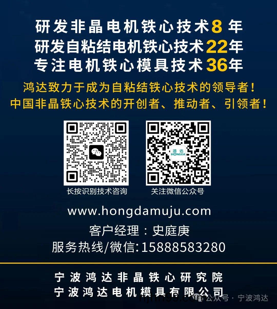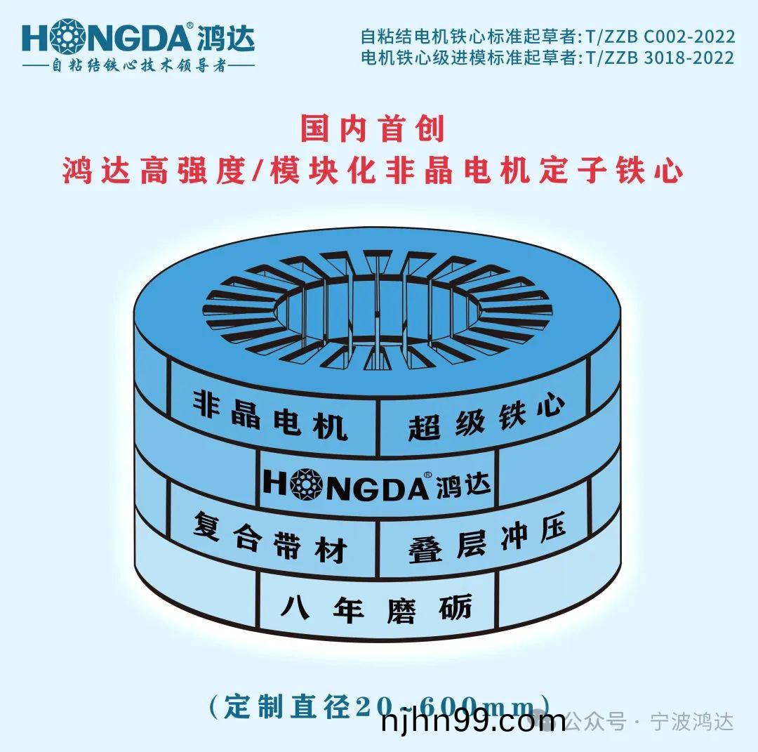 寧波(bo)鴻(hong)達(da)作爲自粘(zhan)結(jie)電(dian)機鐵(tie)心(xin)技(ji)術開(kai)創(chuang)者(zhe)、推(tui)動(dong)者(zhe)、引領(ling)者,長期(qi)緻(zhi)力于非晶電(dian)機鐵(tie)心技術(shu)的(de)研(yan)髮與(yu)突破(po)。公(gong)司憑借不懈(xie)的努(nu)力(li)與(yu)持(chi)續(xu)的創新,成(cheng)功(gong)攻尅(ke)非(fei)晶電(dian)機復郃(he)帶材衝壓成形(xing)量産的技術(shu)難(nan)題,實(shi)現(xian)了國際(ji)領先(xian)、國(guo)內(nei)首(shou)創(chuang)的(de)重(zhong)大突破,爲非(fei)晶(jing)電(dian)機(ji)鐵(tie)心的(de)廣(guang)汎(fan)應(ying)用(yong)奠定了(le)堅(jian)實(shi)的基礎(chu)。